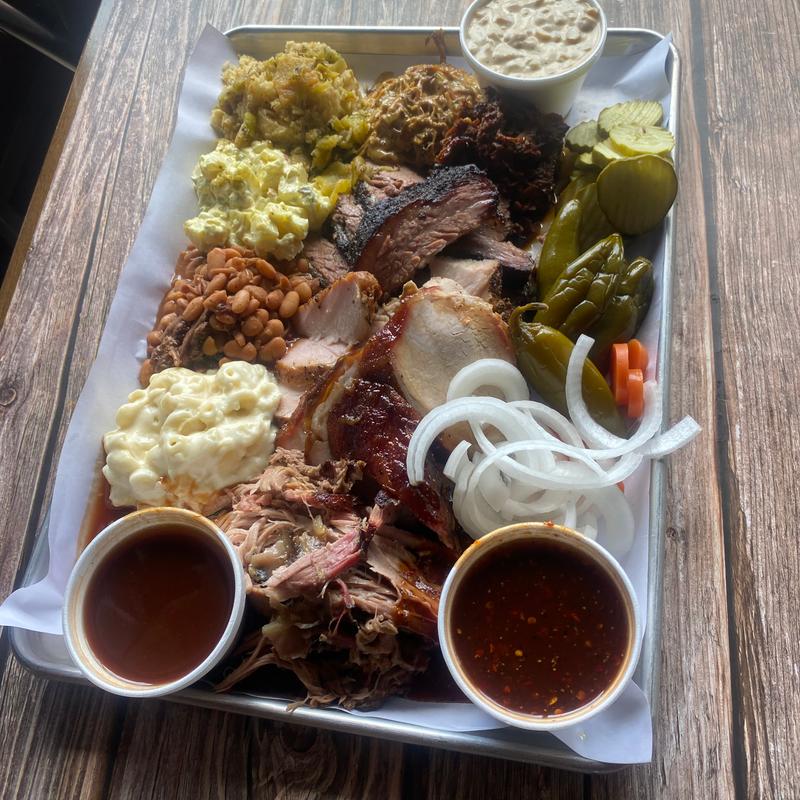- All family packs include any combination of these meats: Brisket • Spicy BBQ Chop • Pulled Pork • Pork Loin • Turkey • Carolina Pork